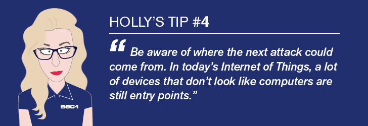 And there’s a plethora of routes into your data when everything is connected to everything else. A breach may come via the Internet of Things. Bring Your Own Device. Cloud services. Point-of-Sale terminals. CCTV cameras. Industrial control systems. (Home Depot was breached from a single compromised POS terminal.) Any device can be a door into corporate data, and some can’t even be locked.